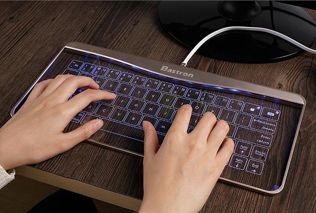 ☝這是 Bastron 設計的一款超薄的透明鋼化玻璃觸摸的智能鍵盤,它科技感非常足,但設計上也非常簡單大方。當夜晚時候的時候可以散發出燈光,而在白天的時候,則就是透明狀。